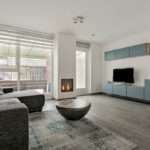 Vanuit de overdekte entree is de hal bereikbaar met meterkast (6 gr. 2x aardlek), toilet, trapopgang naar de eerste verdieping en een schuifdeur naar de keuken en woonkamer. In de woonkamer is een sfeervolle gashaard aanwezig en door de grote raampartij aan de achterzijde is er veel lichtinval. Dit geeft tevens een mooi zicht op de serre en tuin. De serre (van aluminium) is bereikbaar vanuit de woonkamer en is v.v. glazen schuifdeuren. De moderne keuken, in L-vorm, is v.v. diverse kasten en lades, een granieten aanrechtblad, spoelbak met mengkraan, 4-pits gaskookplaat (Neff) en afzuigkap (Itho), combimagnetron/oven (Neff), vaatwasser (Neff) en koelkast (Liebherr). De vloer in de woonkamer, keuken en hal is v.v. een houtlook tegelvloer met vloerverwarming. De muren en plafonds zijn afgewerkt met glad stucwerk. Het toilet is geheel betegeld en v.v. een hangend toilet en fonteintje. De kozijnen zijn van hout met isolerende beglazing.