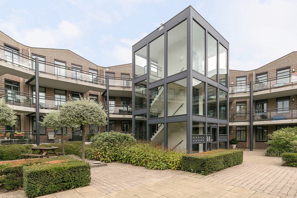 Vanuit de gezamenlijk binnentuin is de centrale entree met intercom en brievenbussen bereikbaar. Vanuit deze entree is er toegang tot de liften, trappenhuis en de galerij.