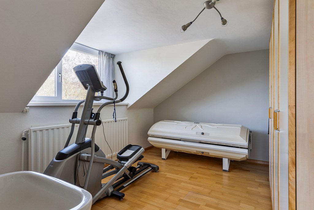 Vanuit de overloop zijn 3 slaapkamers, een trapopgang naar de tweede verdieping, de badkamer en een separaat toilet bereikbaar. De grote slaapkamer aan de voorzijde is v.v. een wastafel en biedt toegang tot het balkon. De stijlvolle badkamer is in 2012 fors uitgebouwd en is deels betegeld en v.v. een ligbad, een dubbele wastafel met meubel, een inloopdouche met regendouche en een geluidssysteem. Het separaat toilet is deels betegeld en v.v. een hangend toilet. De vloer van de slaapkamer en de overloop is v.v. pvc. De wanden en plafonds zijn afgewerkt met stucwerk. De kozijnen zijn van kunststof en van hout en v.v. HR++ glas en enkel glas. Alle ramen zijn v.v. rolluiken. Het grote zijraam boven heeft een screen met elektrische bediening.