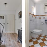 De vloer van de begane grond is v.v. tegels met vloerverwarming (elektrisch). De wanden en plafonds zijn afgewerkt met stucwerk. De kozijnen zijn van hout en deels v.v. dubbel glas en deels HR++ glas. Tevens zijn een aantal ramen v.v. screens. Het toilet is deels betegeld en v.v. een hangend toilet en fonteintje.