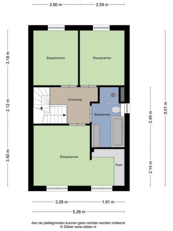 Middels de vaste trap welke is afgewerkt met leren trapbekleding is de overloop bereikbaar.